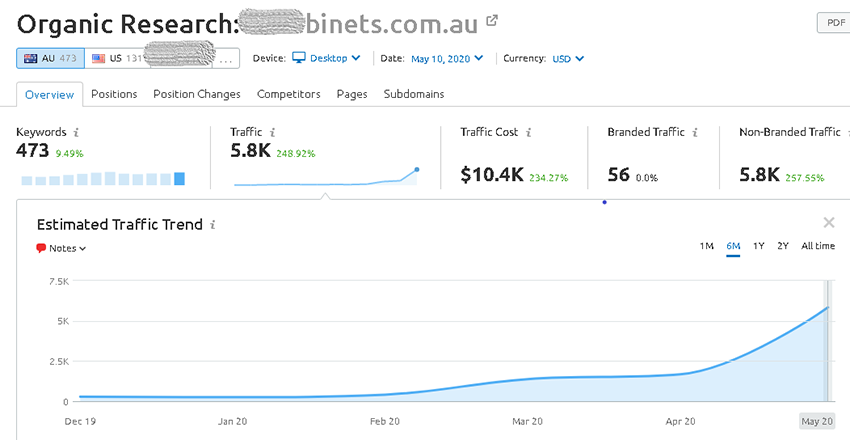 This is the actual SEO Results we achieved, after working consistently for 6 to 8 months for a cabinetmaker in Melbourne.